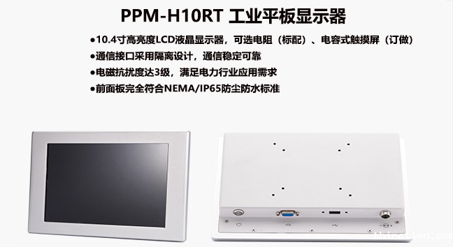 PPM-H10RT坚固美观的全模具压铸成型面板,配合高温五线电阻(电容)触摸屏,高亮宽温LED背光液晶屏,符合IP65防护等级。多种安装方式,适用于机器视觉、机器人、检测等高性能多通讯要求的应用场合。