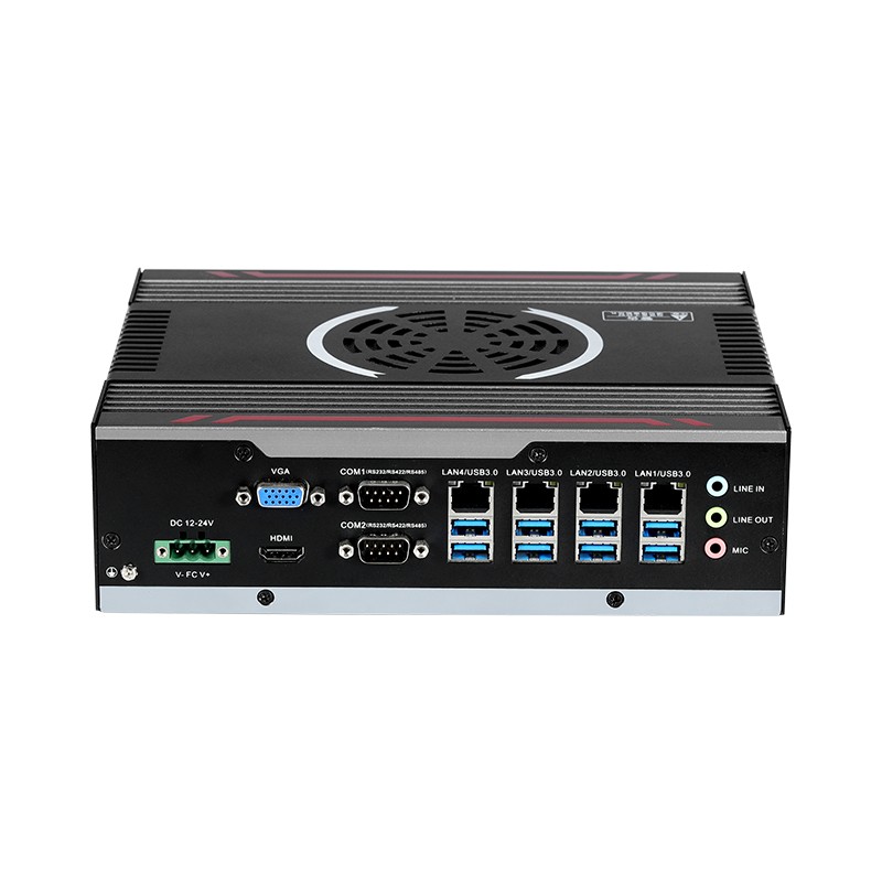 接口丰富 :4*LAN(Intel),6*COM,24*GPIO(12*GPI,12*GPO,带隔离),7*USB3.0+1*USB2.0,1*VGA,1*HDMI,1*远程开关,1*一键还原,1*一键备份,1*SIM槽,1*LINE IN,1*LINE OUT,1*MIC,1*2.5寸硬盘位,1*M.2(KEY-M,2280,PCIEx4 NVME与SATA自适应),1*M.2(KEY-B,3042/3052,PCIE+USB3.0支持4G/5G),1*MINI PCIE(全高,PCIE+USB2.0信号,支持WiFi/BT)